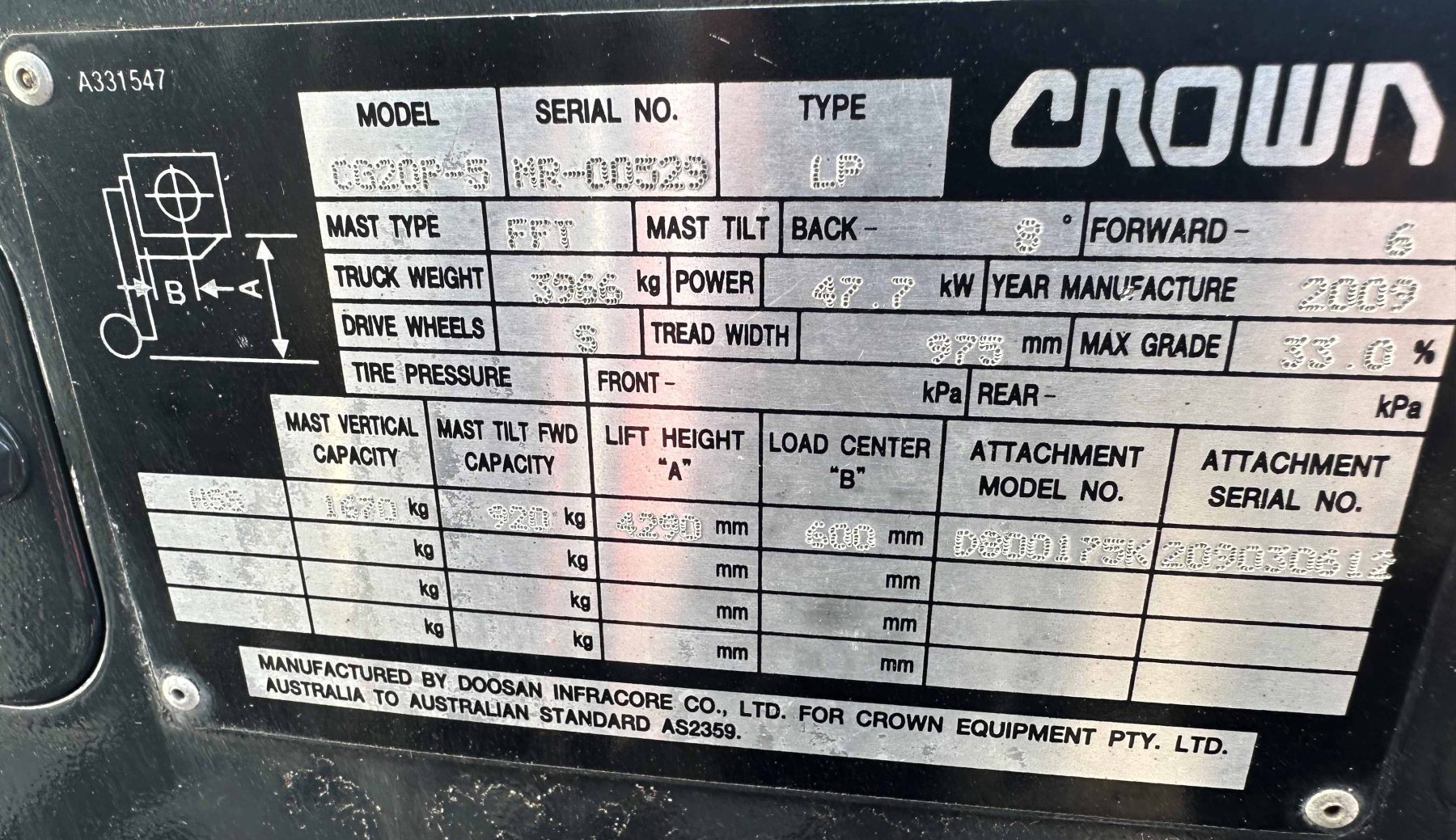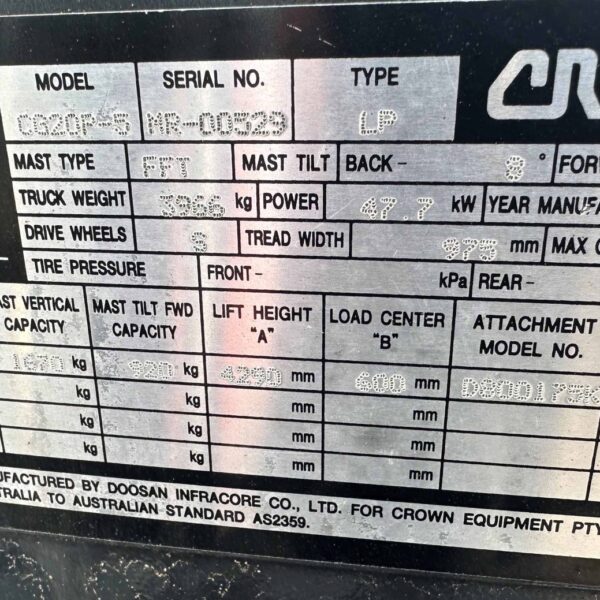 Crown 2000kg LPG with 4290mm three stage mast