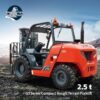 New model Heli 2500kg 4 x4 rough terrain forklift. Very compact forklift to work inside a 20′ sea container. Lowered height is under 2000mm.