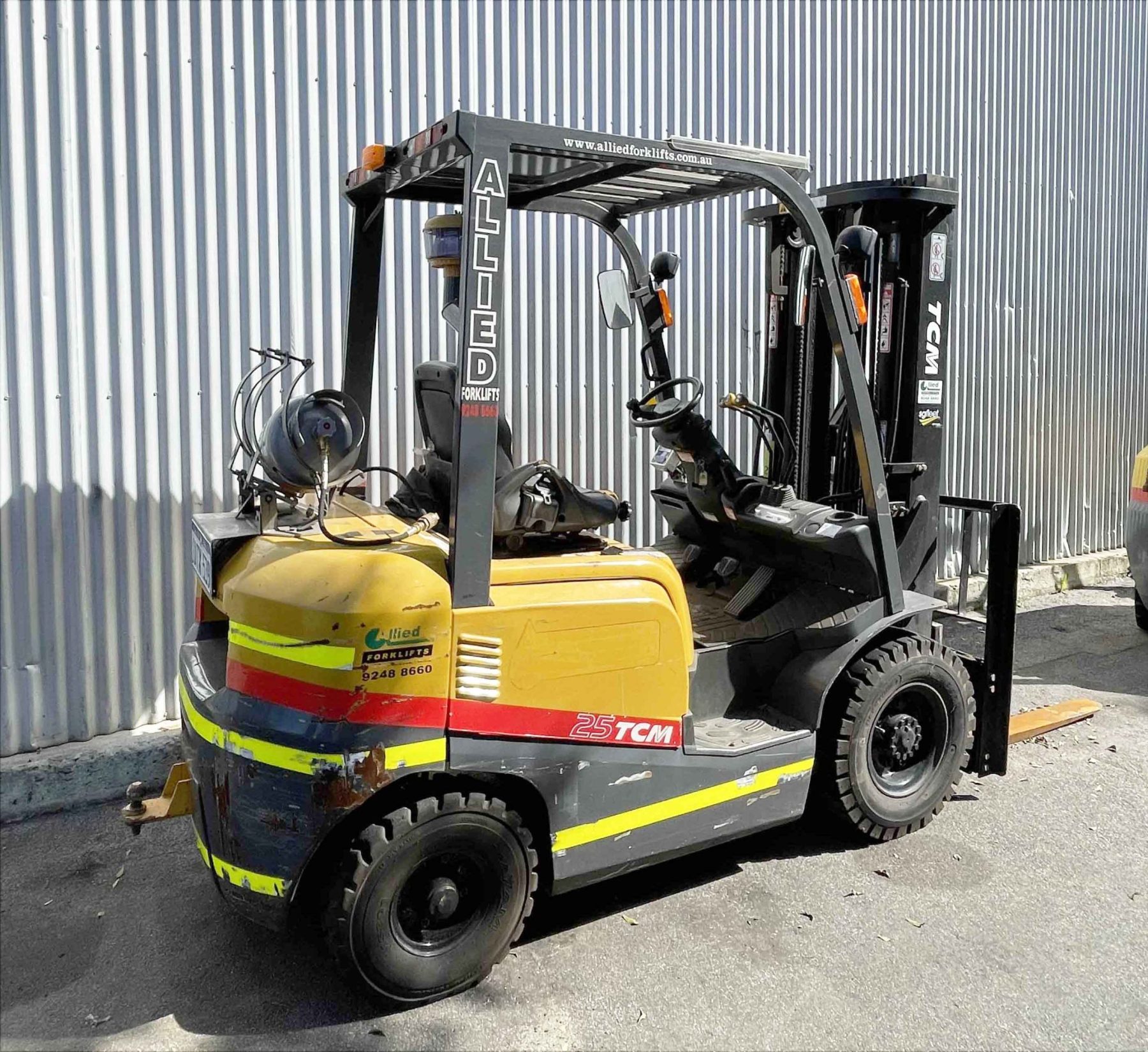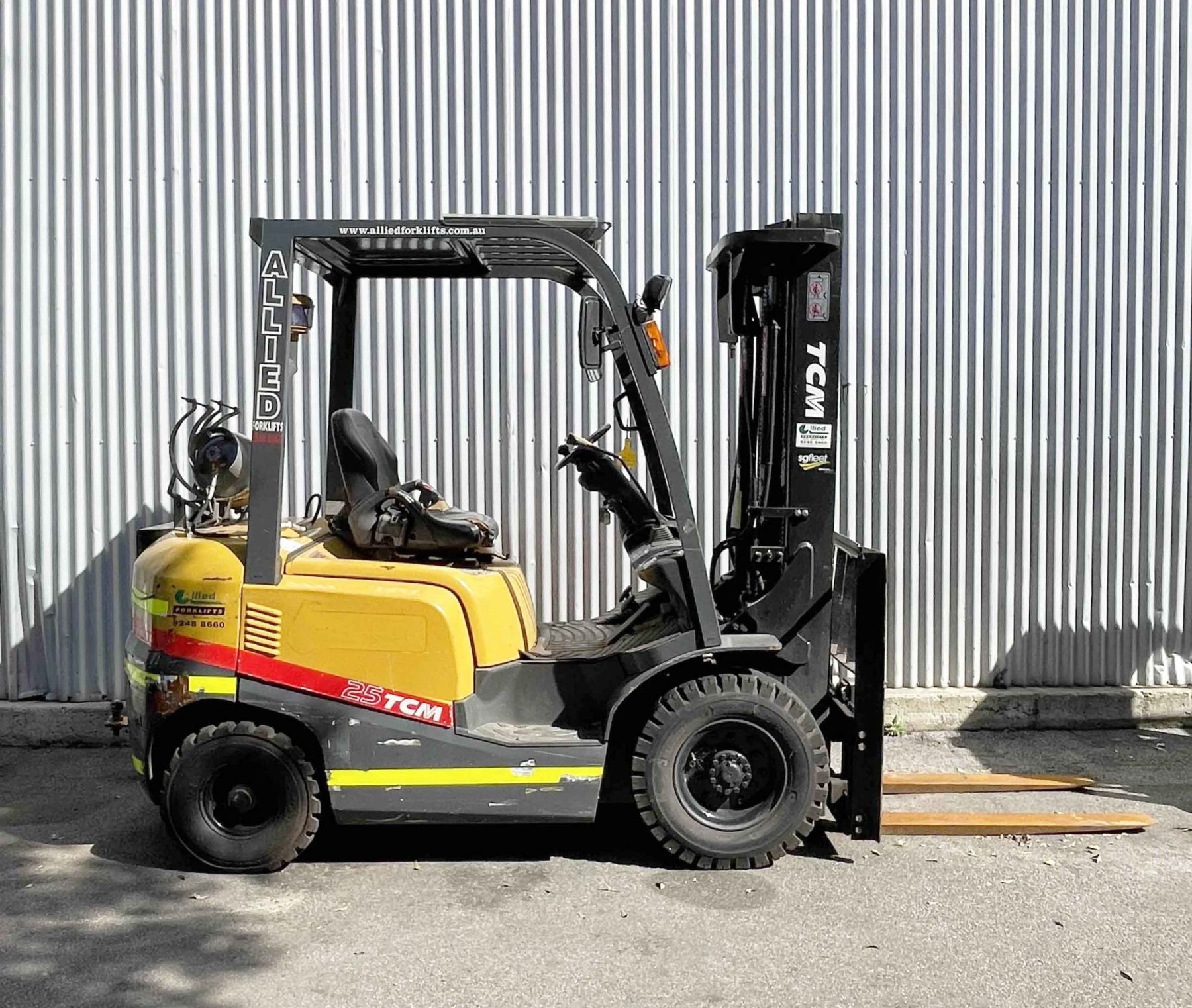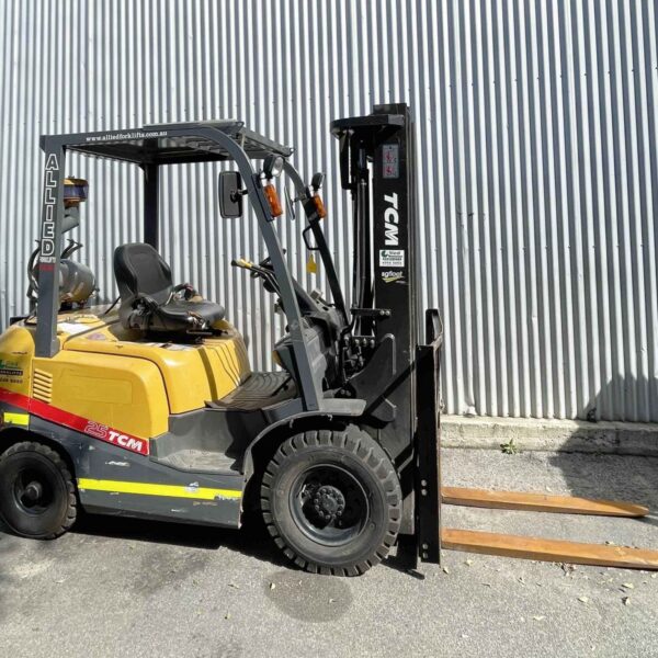 TCM 2500kg LPG forklift with 4800mm 3 stage mast & sideshift