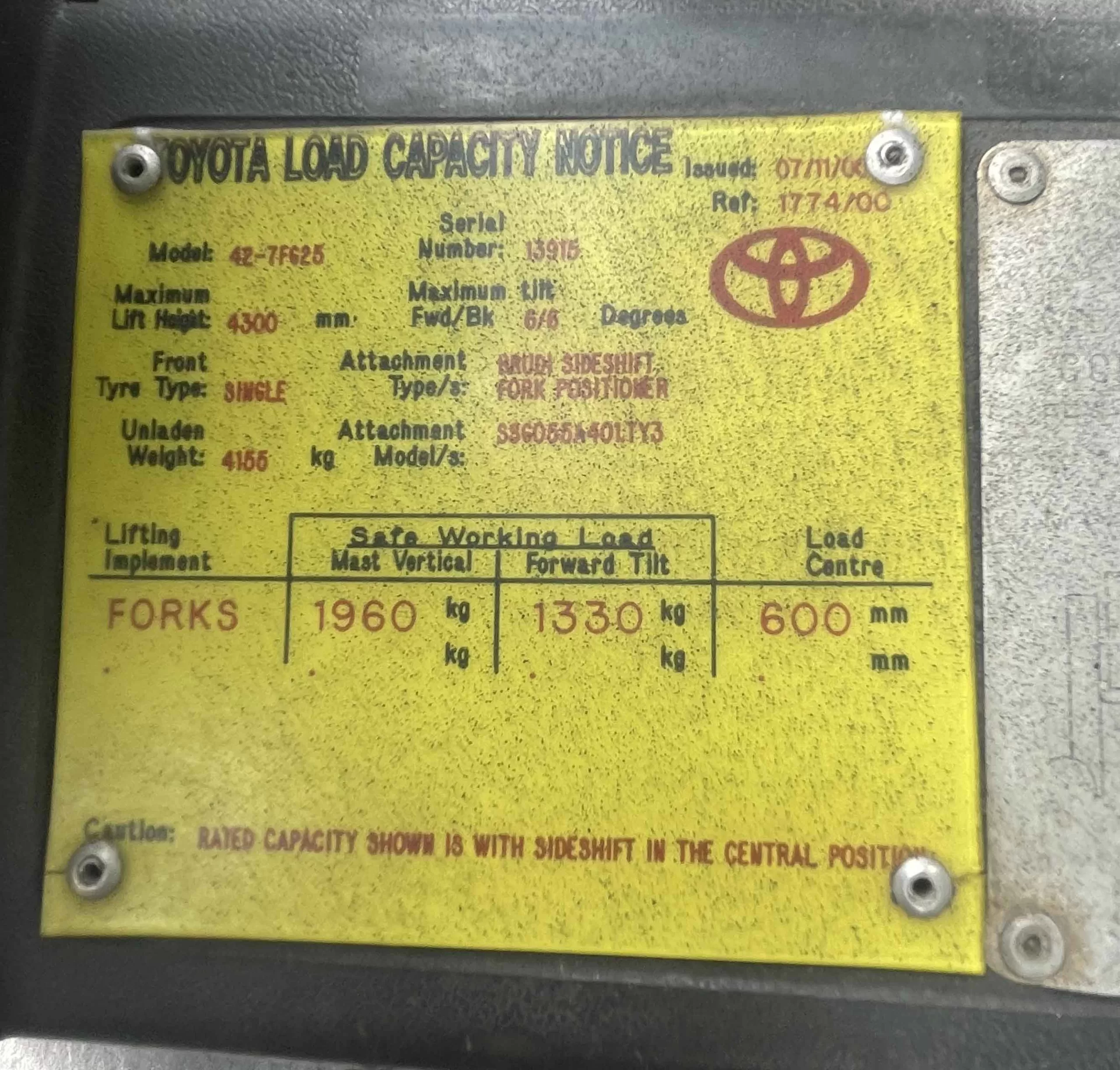 Attachments / Notes: Sideshift & Fork Positioner